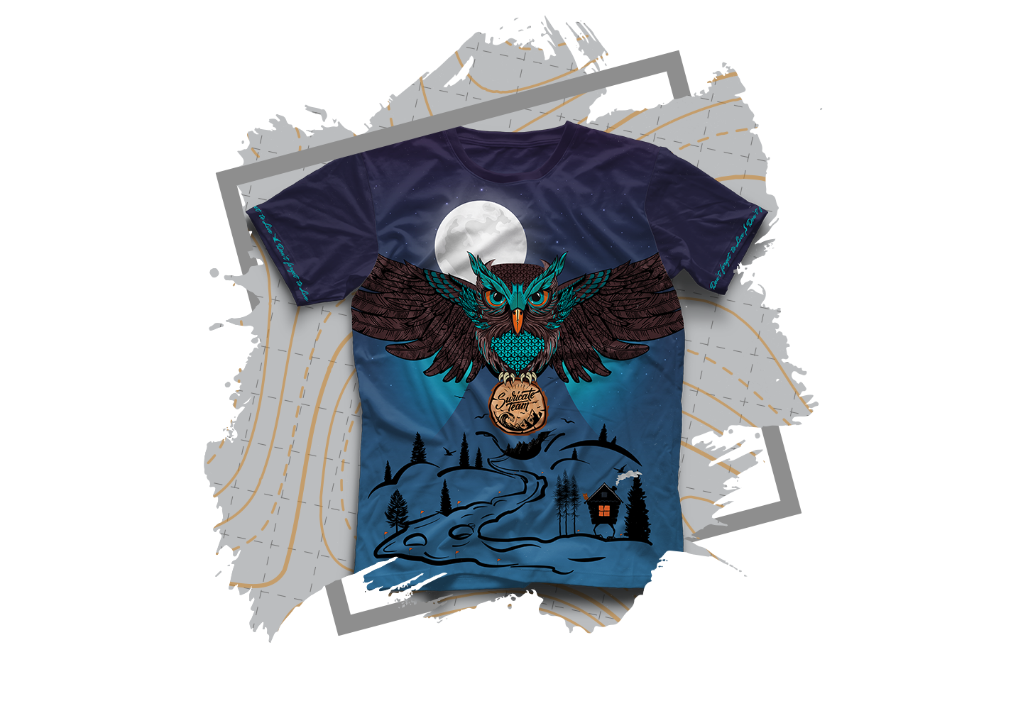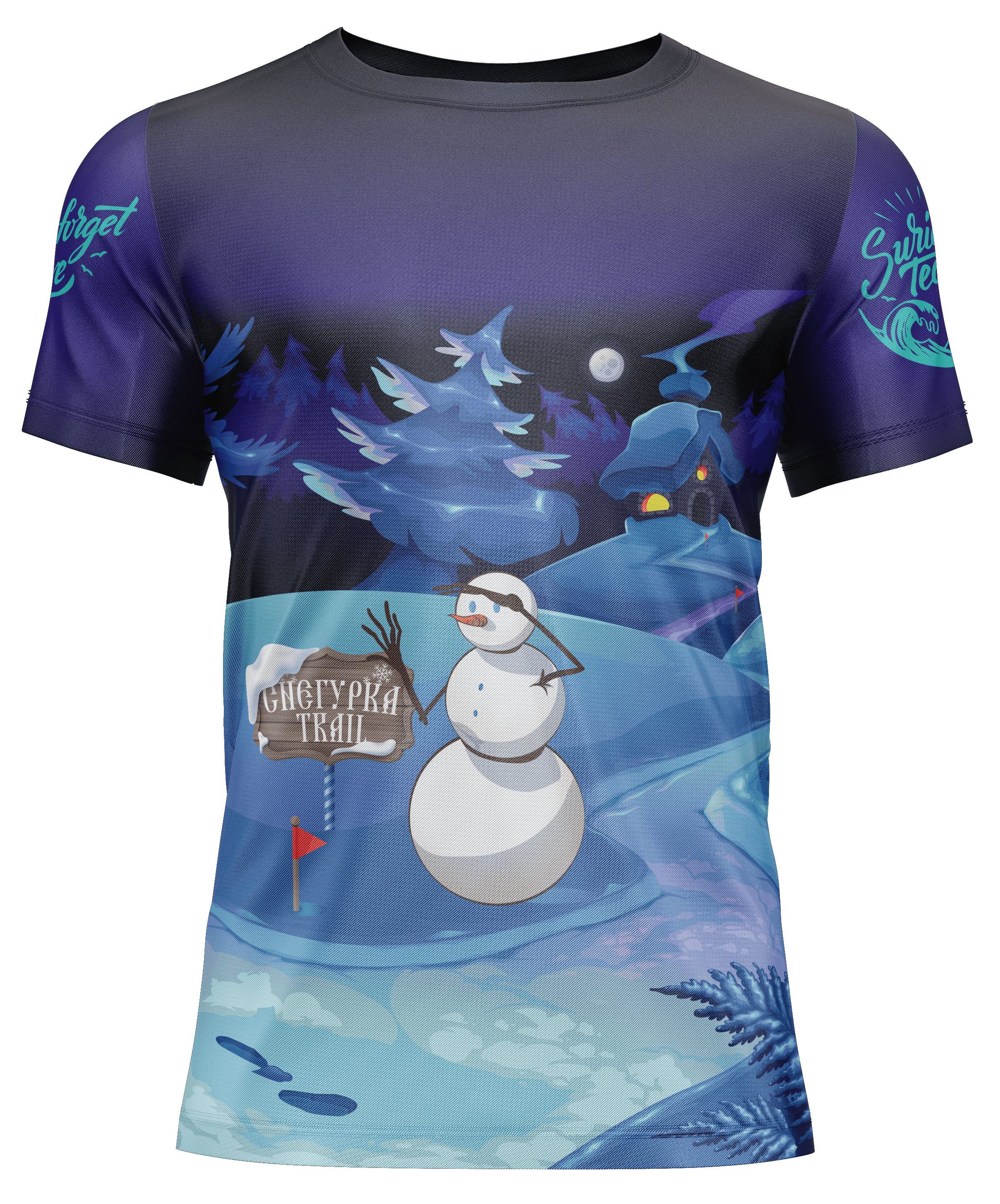 Наконец-то по футболке можно будет определить от какого вида спорта вы без ума. Да-да наконец фирменная футболка трейлранера – все как положено номер на груди, рюкзак-жилетка на плечах, все это дополнено ярким пейзажем царства водяного и удивительной нарисованной колбой с живой и мертвой водой.